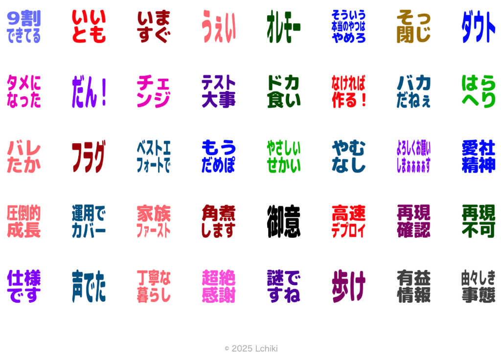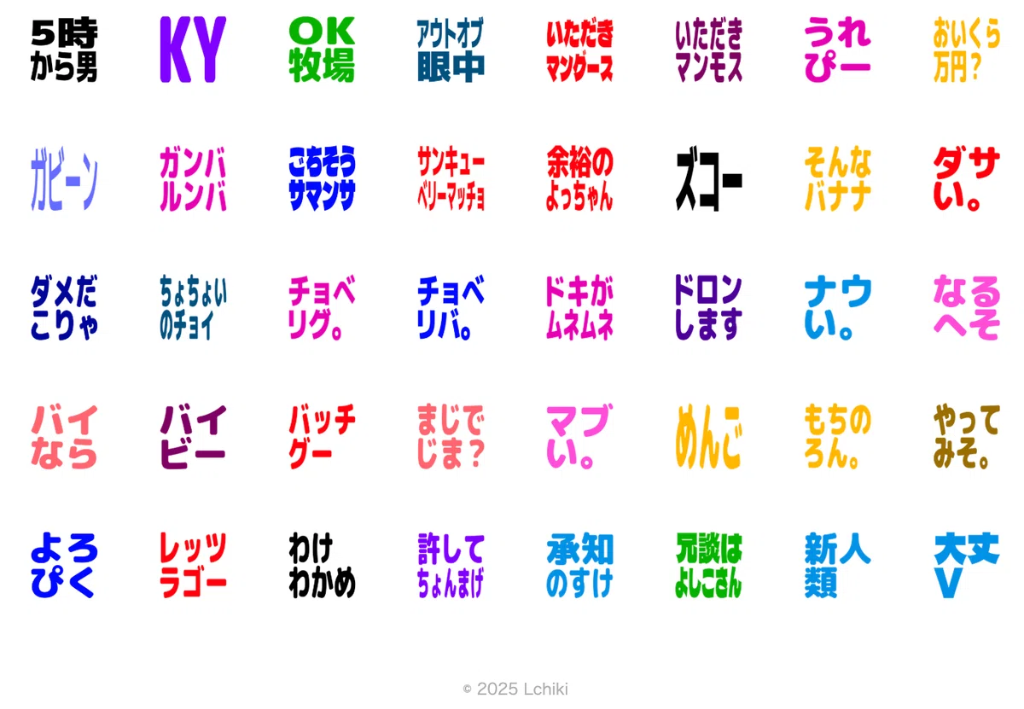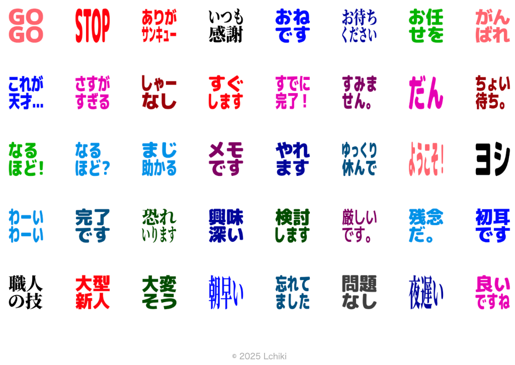 トークに馴染む「通常版」と、背景付きで視認性の高い「見やすい版」からお好みのスタイルを見つけよう。